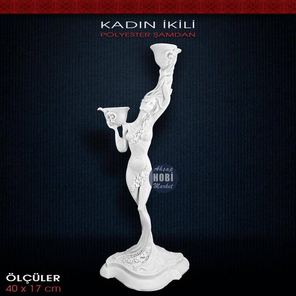 Polyester Kızlı Şamdan Mumluk (39x16cm)