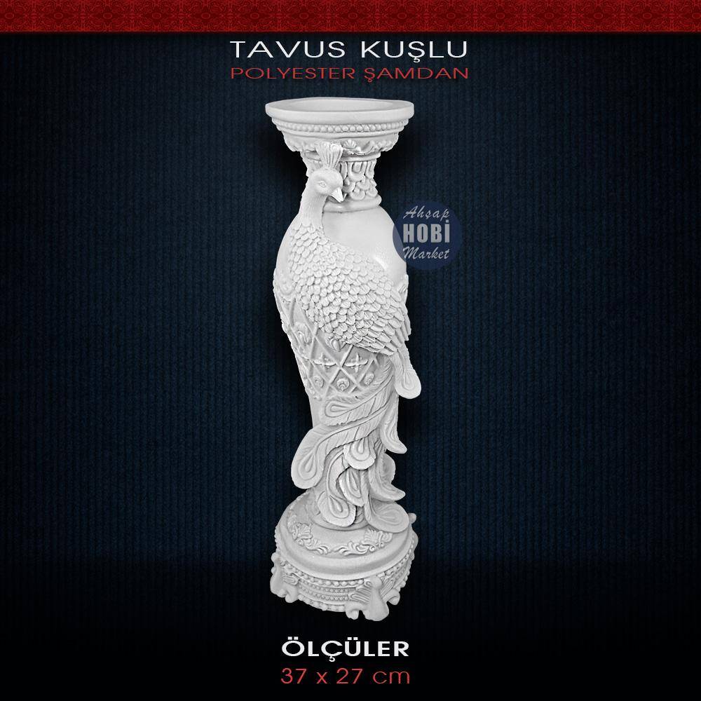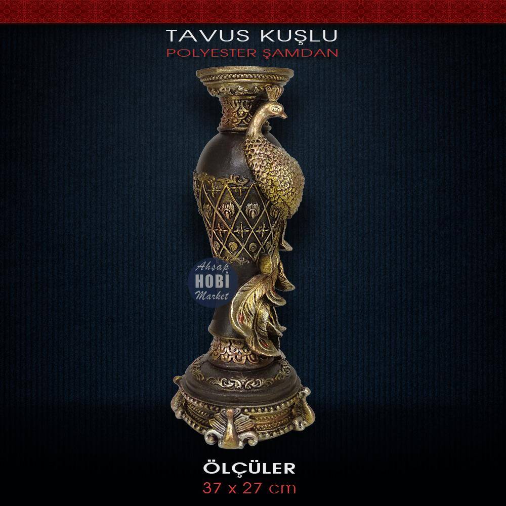 Polyester Tavus Kuşu Figürlü Şamdan (29x10cm)