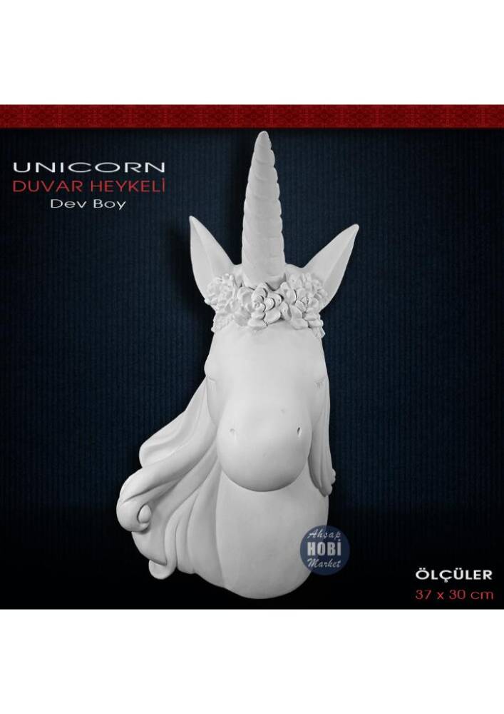 Polyester Unicorn Duvar Atı Heykeli (37x30cm)