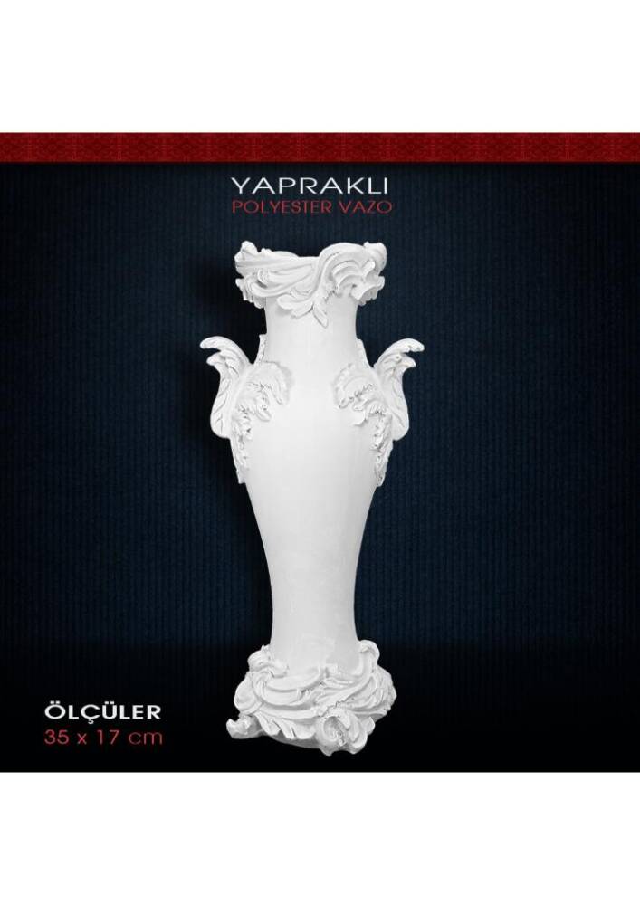 Polyester Yaprak Detaylı Varak Vazo (35x17cm)