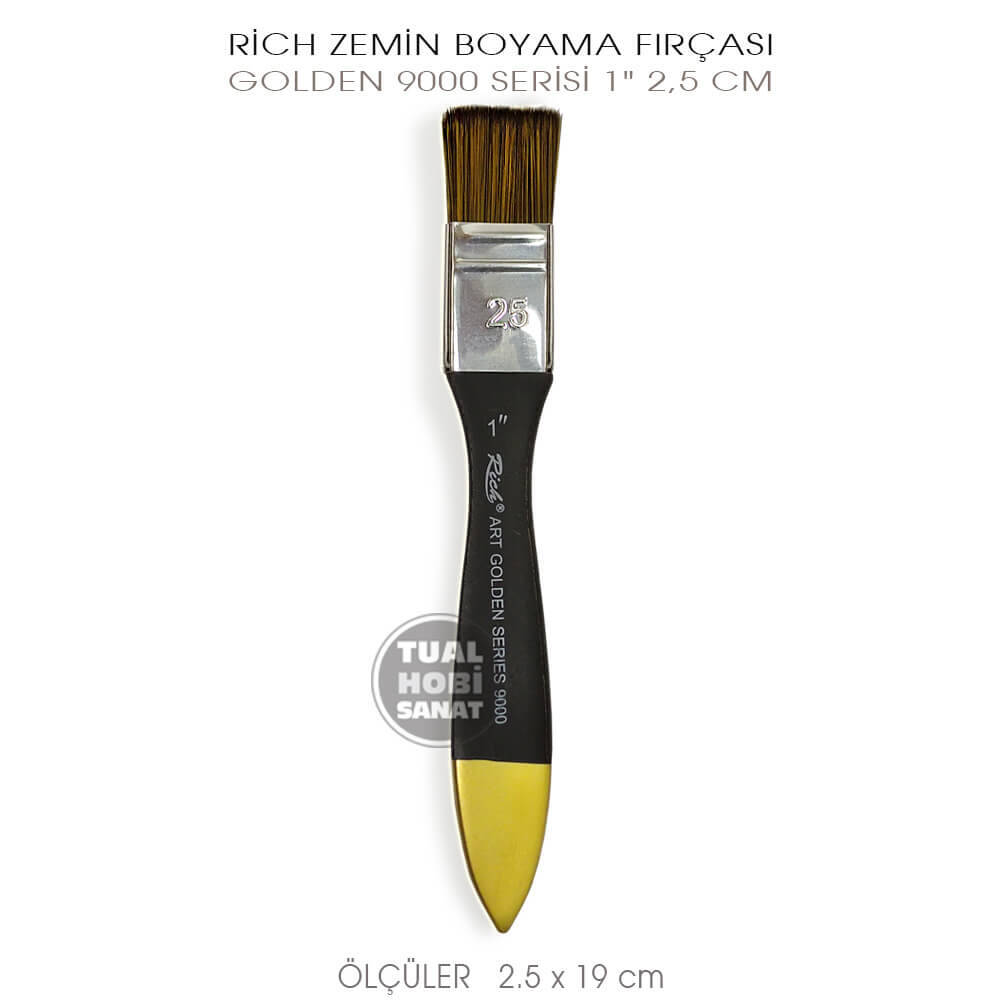 Rich 9000 serisi sentetik gölgeli zemin fırçalarını, her türlü hobi projelerinizde su bazlı ve sentetik tüm boyalarda ve verniklerde güvenle kullanabilirsiniz. Sentetik zemin 9000 golden serisi fırçalar, yumuşak bristol dayanıklı kılları sayesinde boya ve vernik işlerinizi yorulmadan, fırça izi bırakmadan rahatça yaparken, faaliyet sonunda temizliğini yapıp, defalarca rahatlıkla kullanabilirsiniz. Golden serisi zemin fırçaları profesyonel düzeyde olup fırça izi bırakmayan, ince ve çok yumuşak sentetik kıllara sahip olup, ipek fırça da denilmektedir.