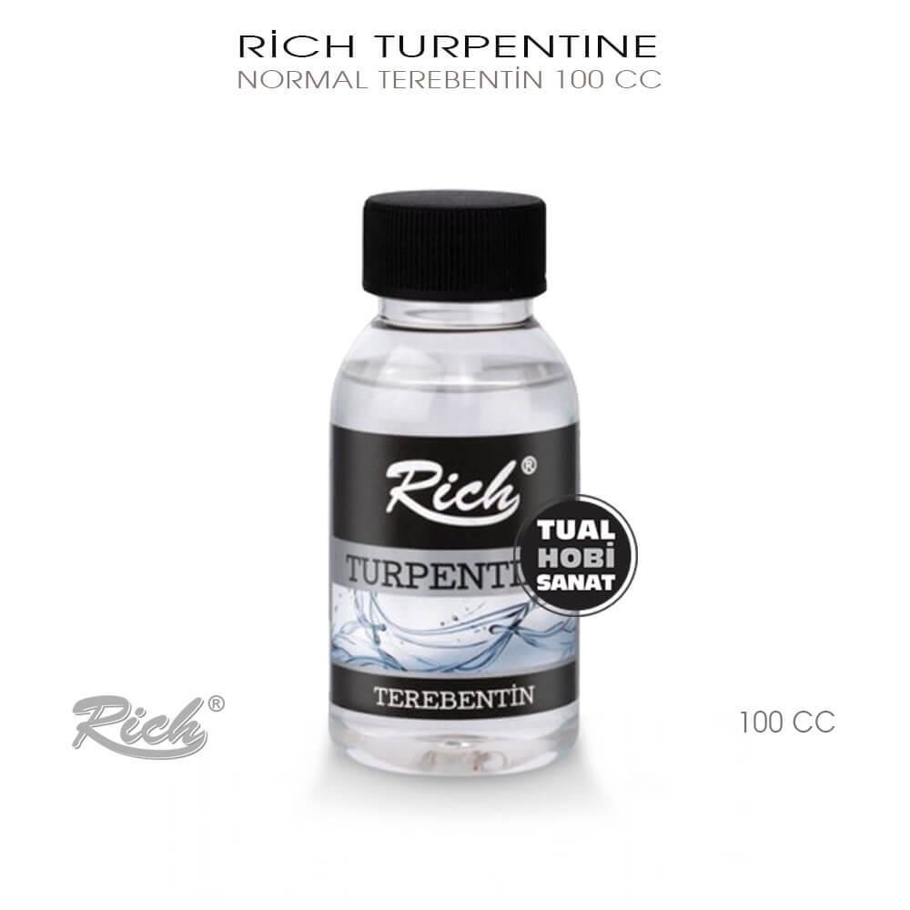 Terebentin, tiner kokusundan rahatsız olan kullanıcılar için geliştirilmiştir. Tinere göre çok daha az hafif bir kokusu vardır. Göz ve elle temas ettirilmemeli, yutulmamalıdır. Çocukların erişemeyeceği yerlerde saklanmalıdır. Çocukların kullanımına uygun değildir. Rich Terebentin boya çözücü olarak da kullanılabilir.