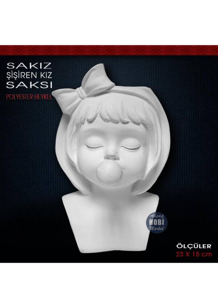Sakız Şişiren Kız Saksı (23x15 cm) Ham Polyester