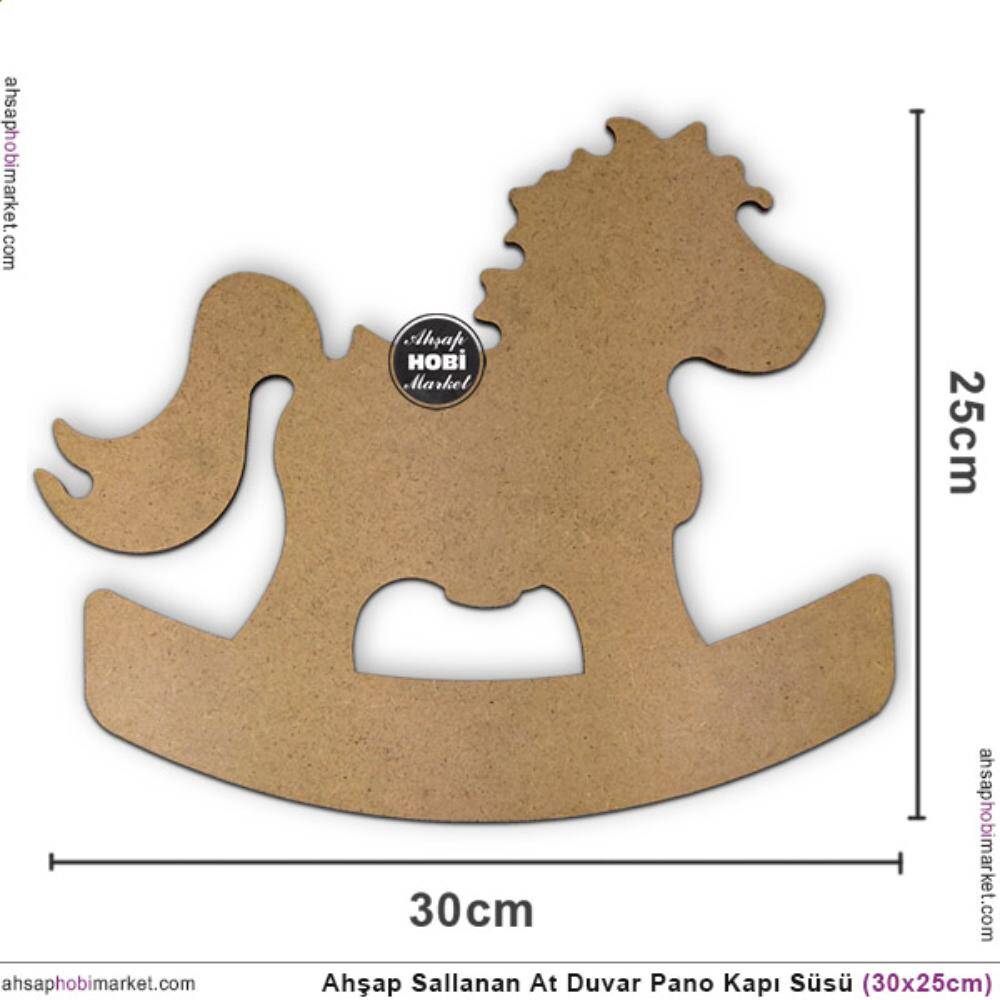 Sallanan At Ahşap Duvar Pano Kapı Süsü (30x25 cm)