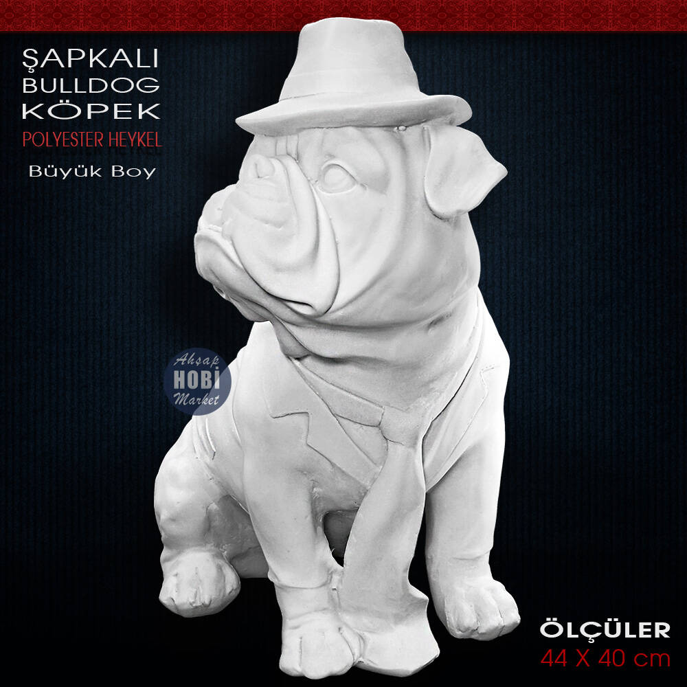 Şapkalı Bulldog Köpek Heykeli Dev Boy (44x40 cm) Ham Polyester