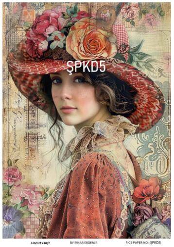 Şapkalı Kadın Figürlü Pirinç Dekopaj Model : ŞPKD05