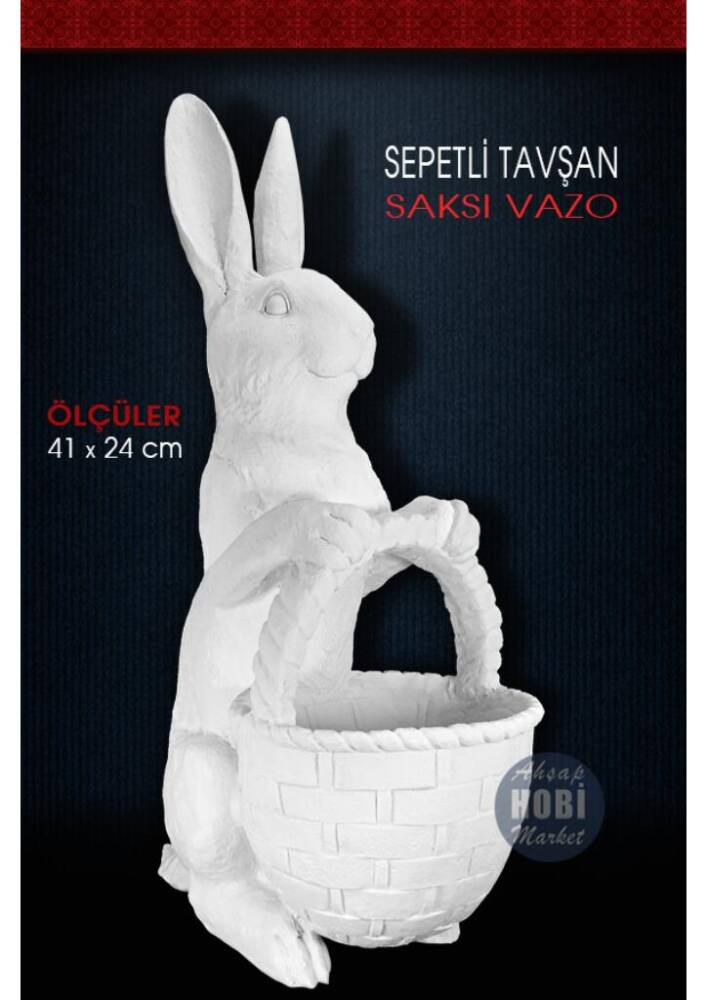 Sepetli Tavşan Saksı Vazo (41x24cm) Ham Polyester