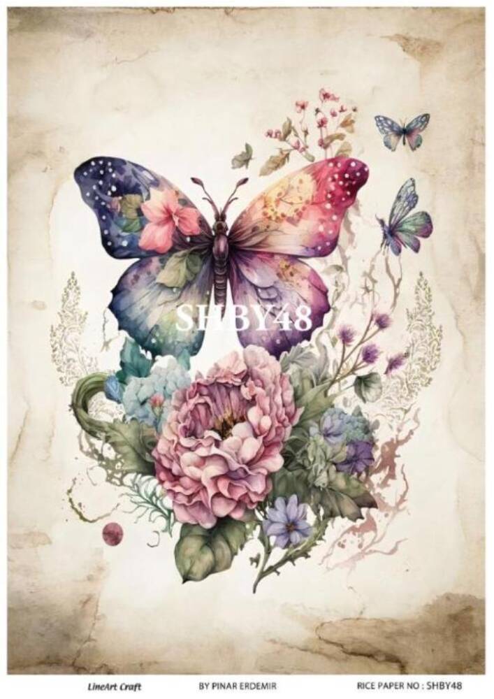 Shabby Chic Çiçek Desenli Pirinç Dekopaj Model : SHBY48