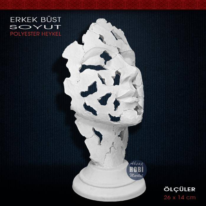 Soyut Erkek Büstü Heykeli (26x14cm) Ham Polyester