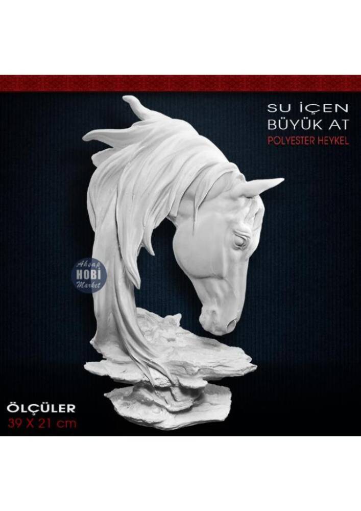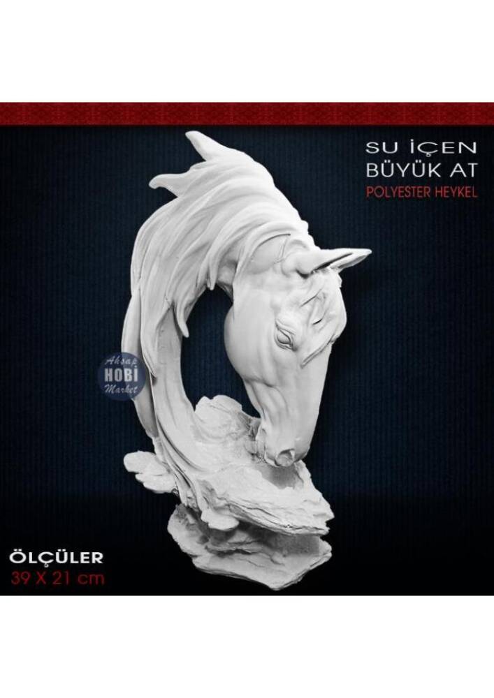 Su İçen At Kafası Heykeli Büyük (39x21 cm) Ham Polyester