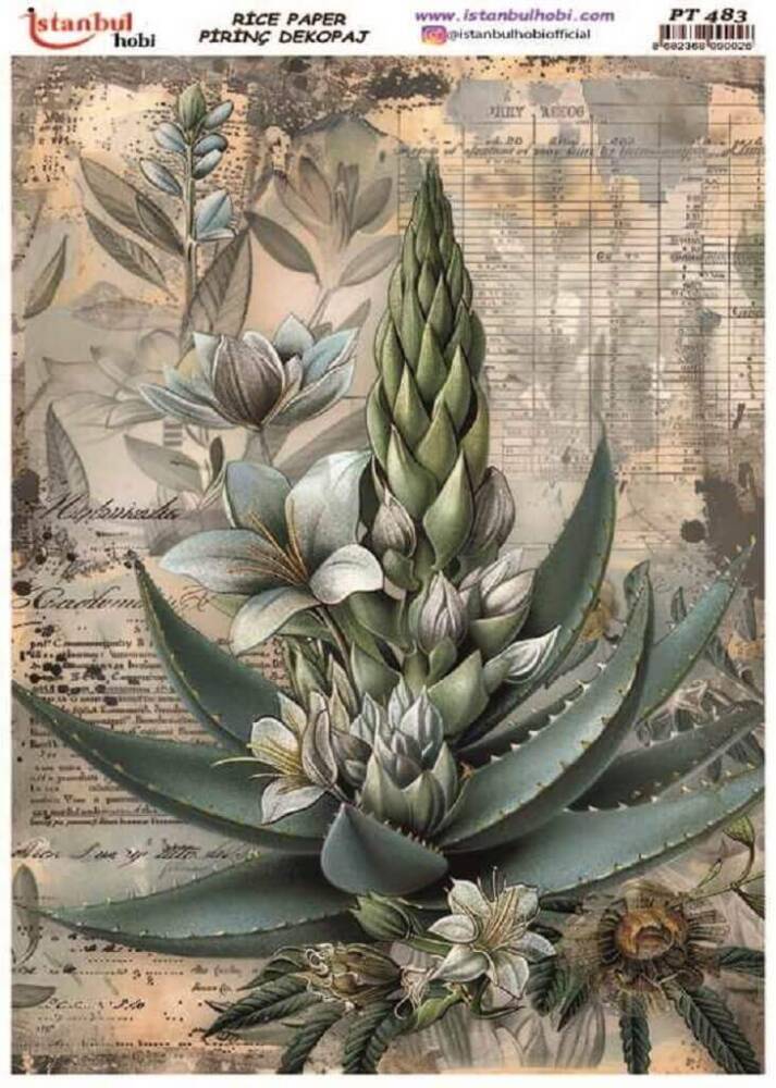 Sukulent Desenli Pirinç Dekopaj - Model : PT 00483 , pirinç çeltiğinden üretilmiş, her türlü hobi projesinde kullanılabilen, dekopaj tutkalı ile yapıştırılabilen, yapıştırıldığı yüzeyde hava kabarcığı bırakmayan, birinci kalite dekopaj kağıdıdır. Pirinç Dekopajların üzerleindeki desenler, kullanıldığı ürünün görkemli ve üst düzey gözükmesini sağlamaktadır.