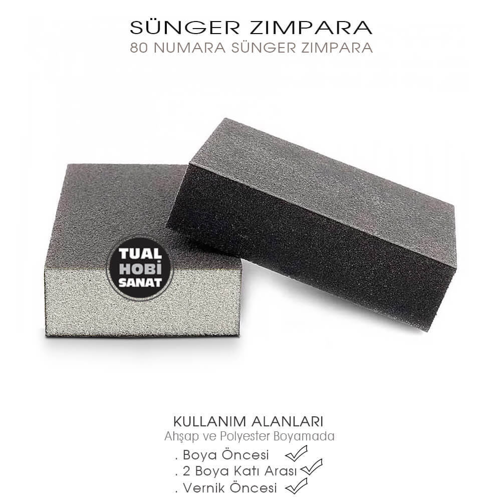 Sünger Zımparalar, ahşap, mdf, polyester, seramik, metal, alçı, kartonpiyer ve doğal ağaç gibi yüzeylerde güvenle kullanılabilir. 80 numara olması nedeniyle çok pürüzlü yüzeylerin düzeltilmesinden ziyade, boya veya vernik öncesi yüzeyi pürüzlerinden arındırmak amacıyla kullanılır.