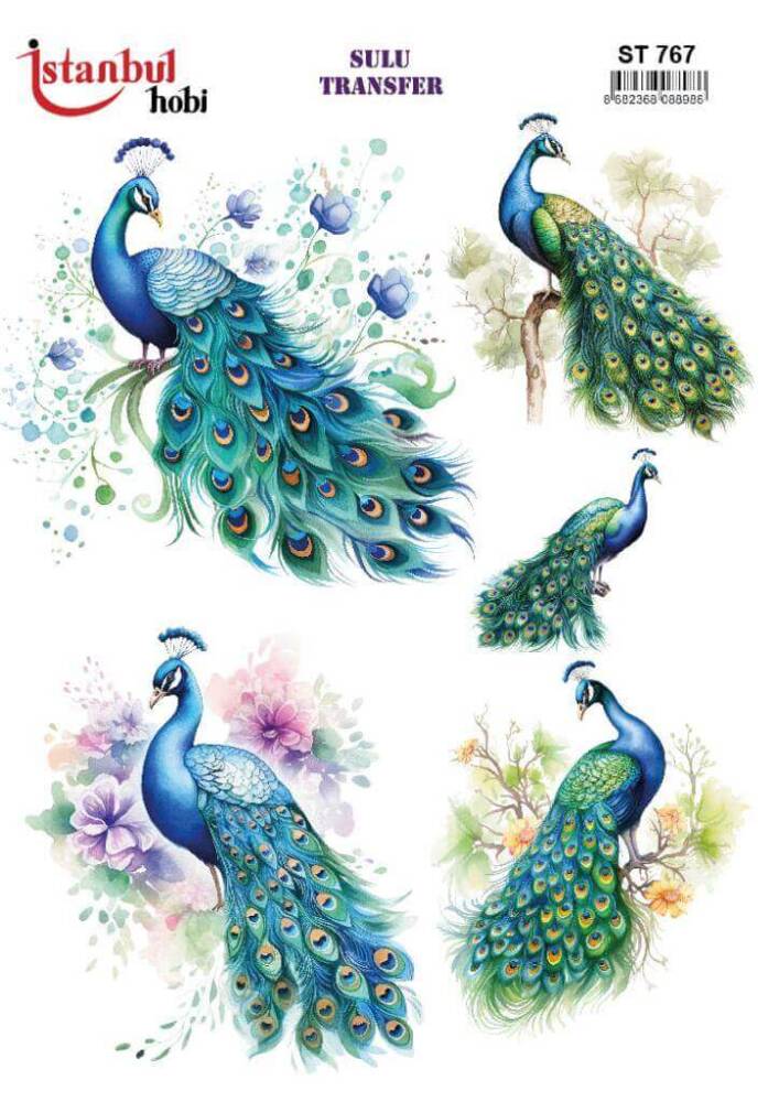 Tavus Kuşu Desenli Sulu Transfer Kağıdı STI-767