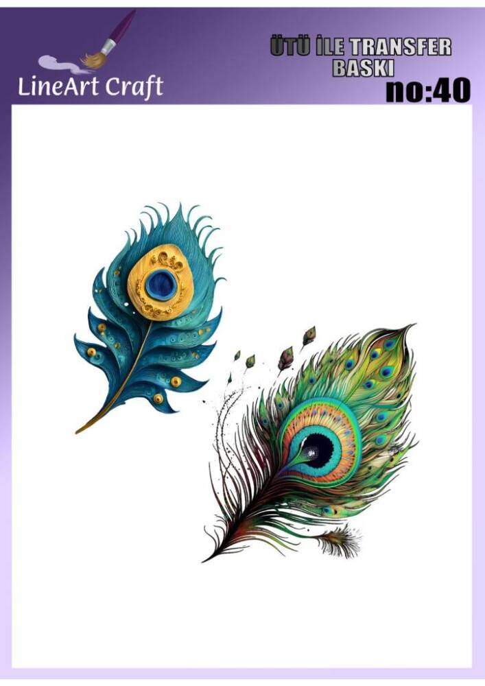 Tavus Kuşu Tüyü Desenli Kumaş Transfer Kağıdı LNT-K040 (20x20 cm)