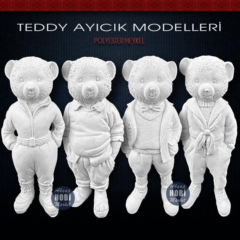 Teddy Ayıcık Biblo Heykel Gömlek Kazak Detaylı (16x7 cm) Ham Polyester