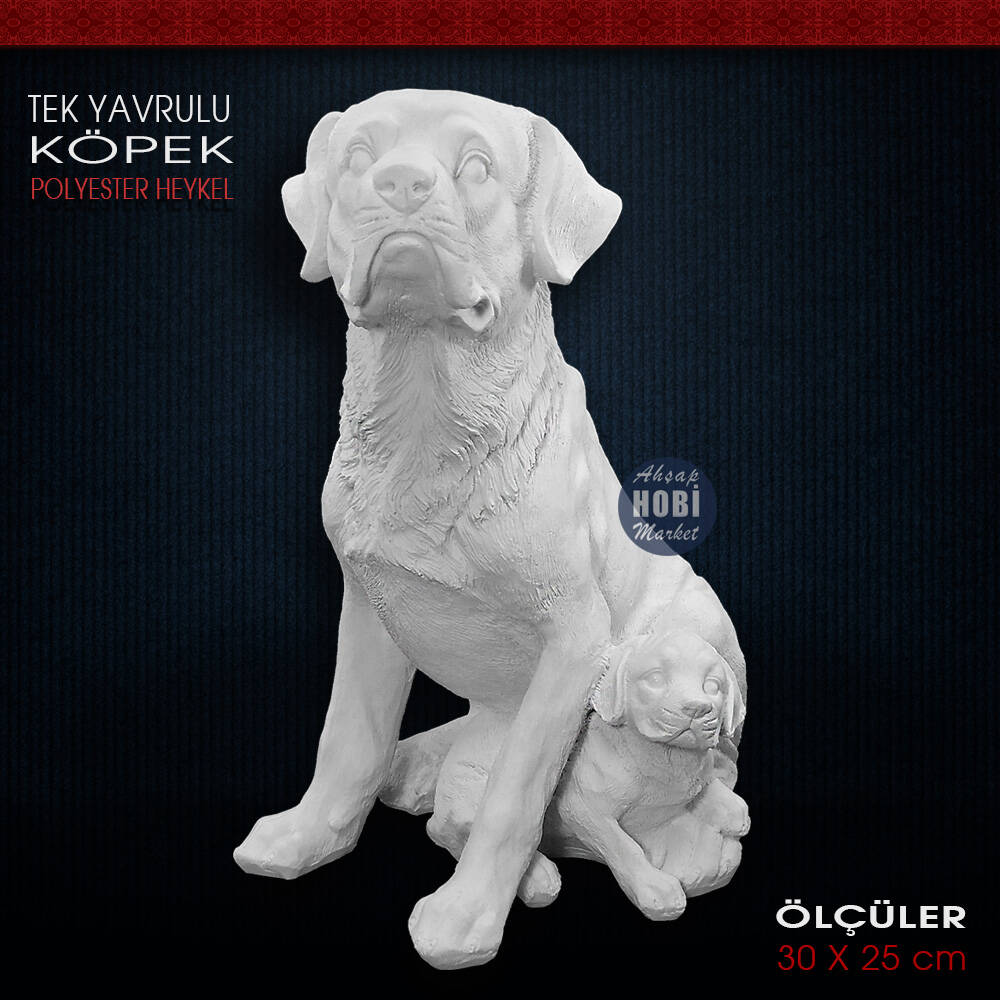 Tek Yavrulu Köpek Heykeli (30x25 cm) Ham Polyester
