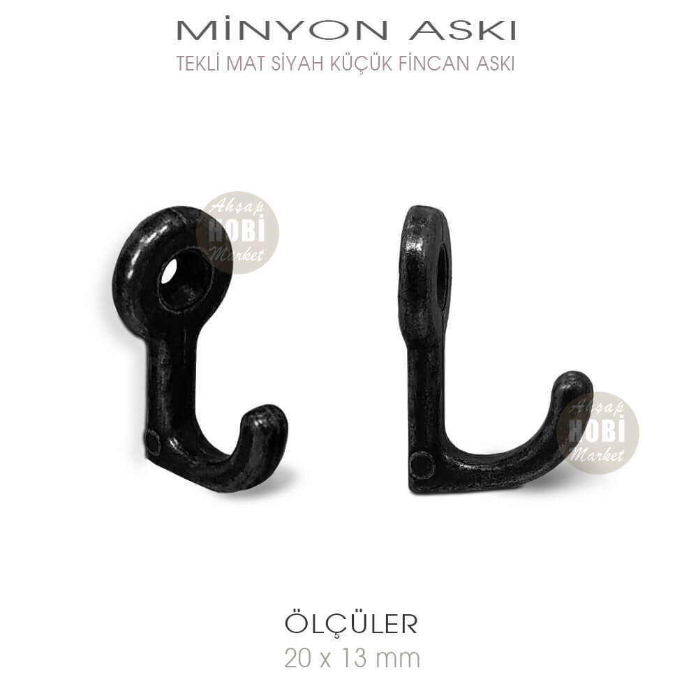 Minyon Tekli Fincan Kulbu da denilen, mat siyah renkli küçük boy askılarımız, kaliteli metal üzerine, kaliteli siyah kaplama yapılarak üretilmiş, dekoratif ve rustik görünümüyle kullanıldığı yerde fark yaratacak bir askı aparatıdır. Birinci sınıf işçiliğe sahip minyon tekli askılar, hatasız olup piyasada bulunan yanar döner renkli ucuz Çin mallarından değildir. Mat siyah renkli askı aparatları, ürünlerin titizlikle seçildiği tualhobisanat.com güvencesiyle tarafınıza gönderilmektedir.