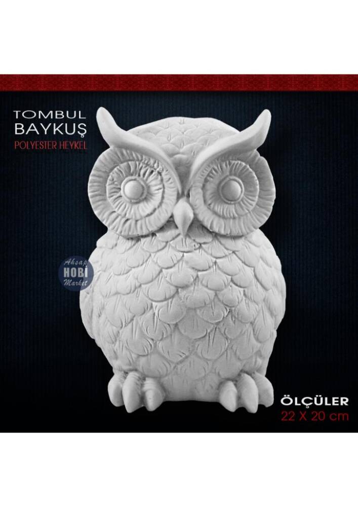 Tombul Baykuş Heykeli (22x20 cm) Ham Polyester