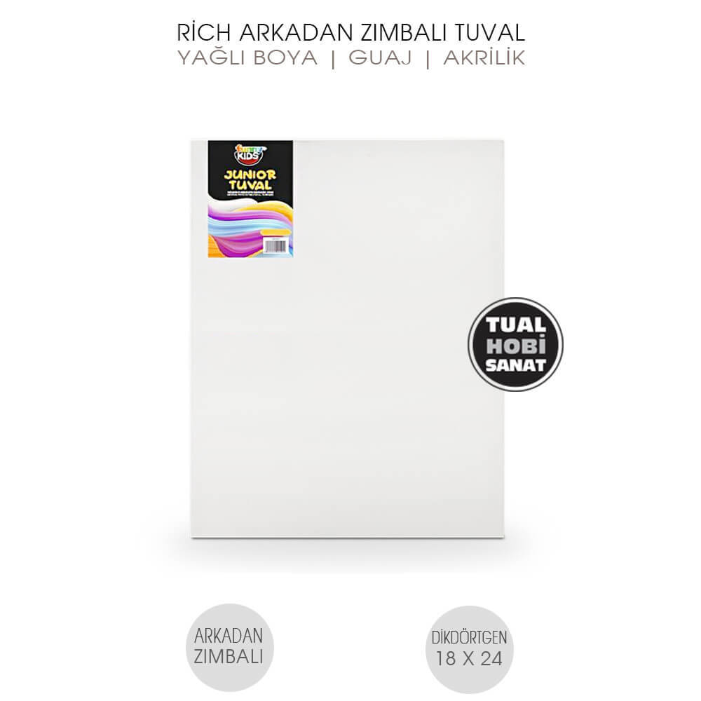 Rich Funny Kids Junior Tuval Serisi, yağlıboya ve akrilik boya tekniklerine uygun, arkadan zımbalı, 18x24 cm boyutlarında, kaliteli tuval bezinden üretilmiş, sanatsal ve eğitim faaliyetlerinde kullanılan ekonomik fiyatlu tuvallerdir.