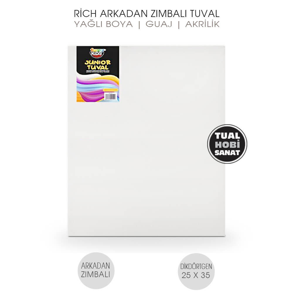 Rich Funny Kids Junior Tuval Serisi, yağlıboya ve akrilik boya tekniklerine uygun, arkadan zımbalı, 25X35 cm boyutlarında, kaliteli tuval bezinden üretilmiş, sanatsal ve eğitim faaliyetlerinde kullanılan ekonomik fiyatlu tuvallerdir.