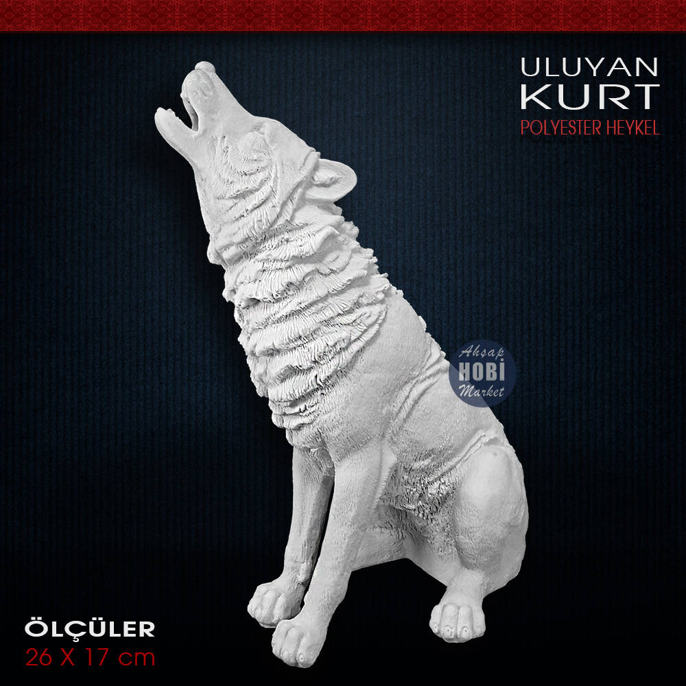 Uluyan Kurt Heykel Biblo (26x17 cm) Ham Polyester