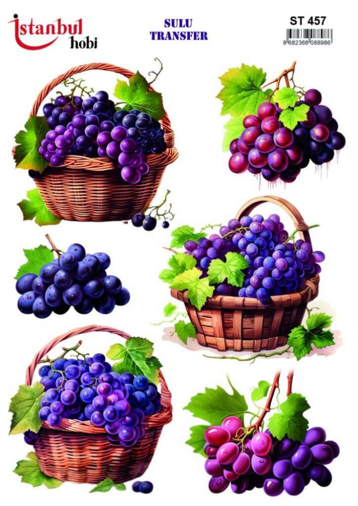 Sulu Transfer Kağıdı model STİ - 457, her türlü hobi projesinde kullanılabilen, kendinden yapışkanlı, yapıştırıldığı yüzeyde hava kabarcığı bırakmayan, birinci kalite transfer kağıdıdır. Transfer Kağıtlarının üzerlerindeki desenler, kullanıldığı ürünün görkemli ve üst düzey gözükmesini sağlamaktadır.