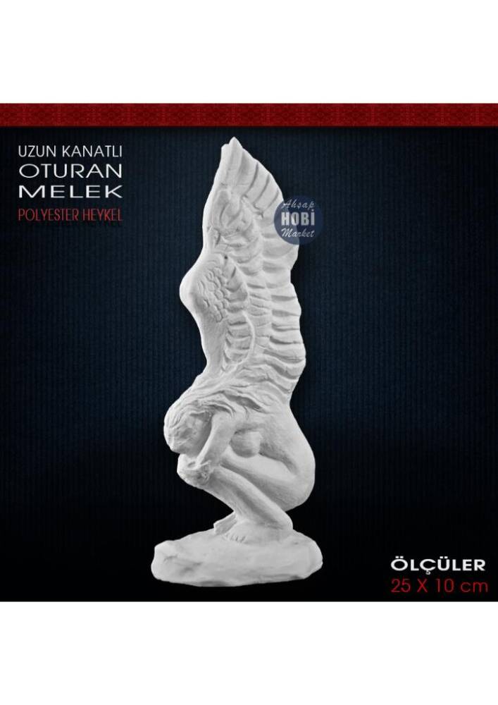 Uzun Kanatlı Oturan Melek Biblo (25x10 cm) Ham Polyester