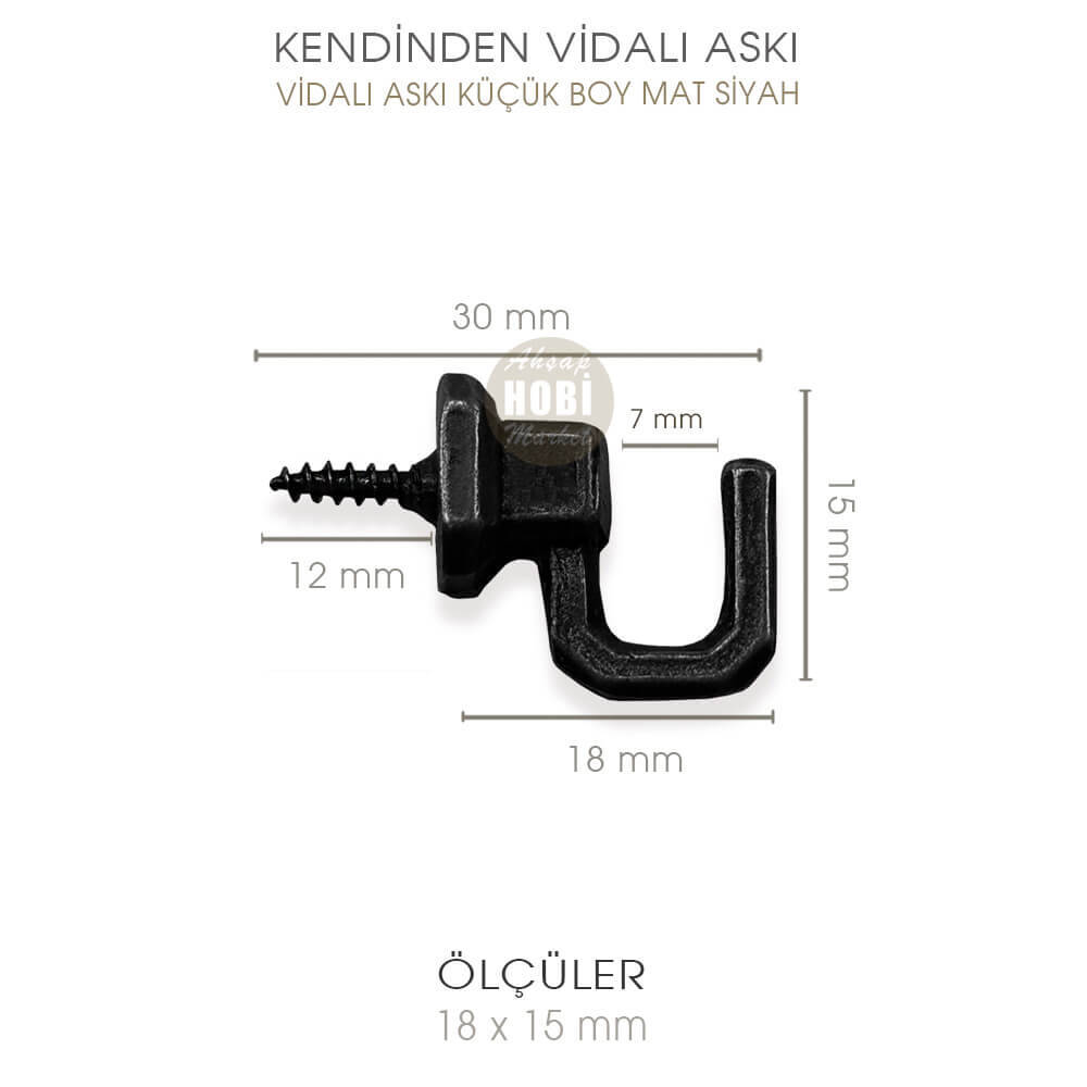 Vidalı Askının Vida Dahil Uzunluğu 3 cm, vida hariç uzunluğu 1,8 cm, genişliği ise 1,5 cm boyutundadır. Askıya elbise, kıyafet, dekoratif süsler, sapı 7 mm'yi geçmeyen kahve ve çay fincanlarını rahatlıkla asabilirsiniz. Ürün çok amaçlı bir kullanıma sahiptir.