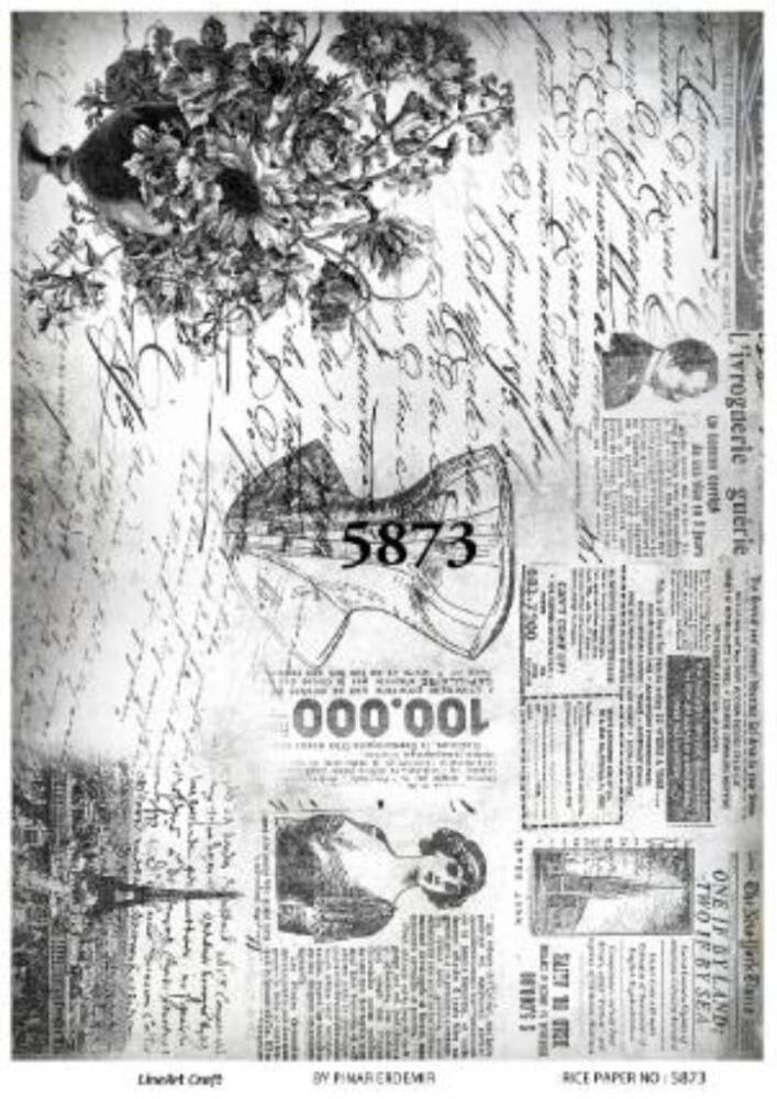 Vintage Çiçek ve Yazı Desenli Pirinç Dekopaj - Model : 5873