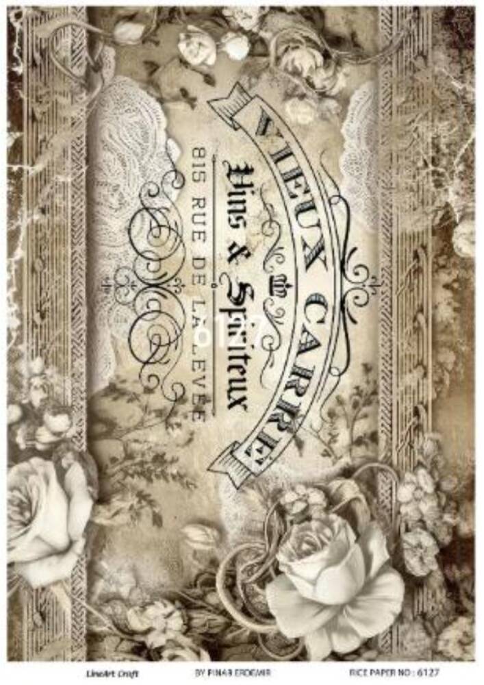 Vintage Çiçek ve Yazı Desenli Pirinç Dekopaj - Model : 6127