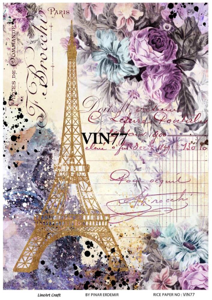 Vintage Eyfel Kulesi ve Çiçek Desenli Pirinç Dekopaj Model : VIN77