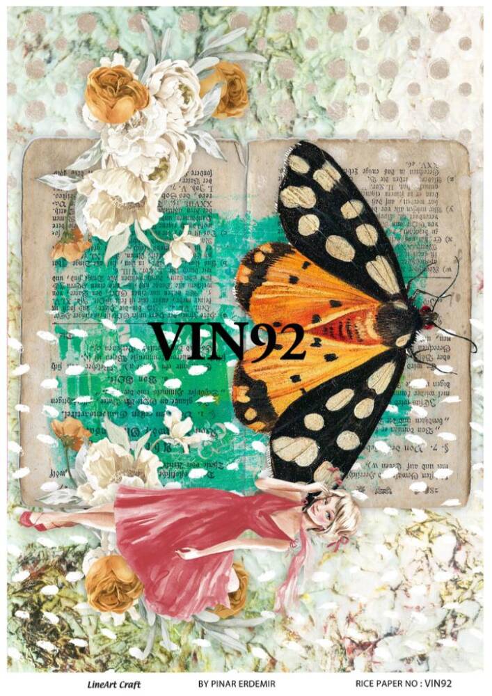 Vintage Kelebek Çiçek ve Kadın Desenli Pirinç Dekopaj Model : VIN92