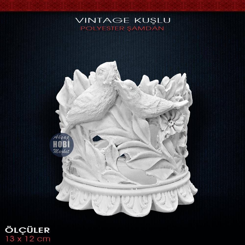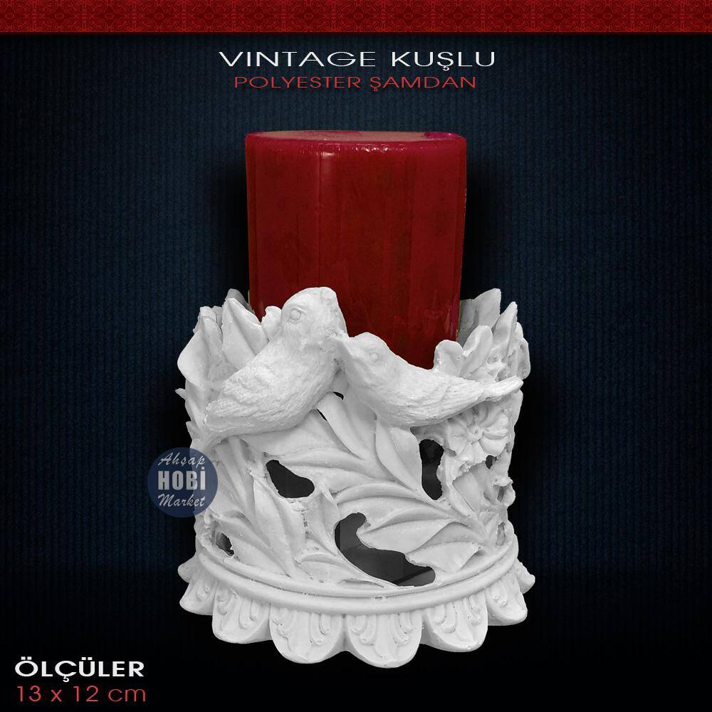 Vintage Kuşlu Kalın Mumluk Şamdan (13x12cm)