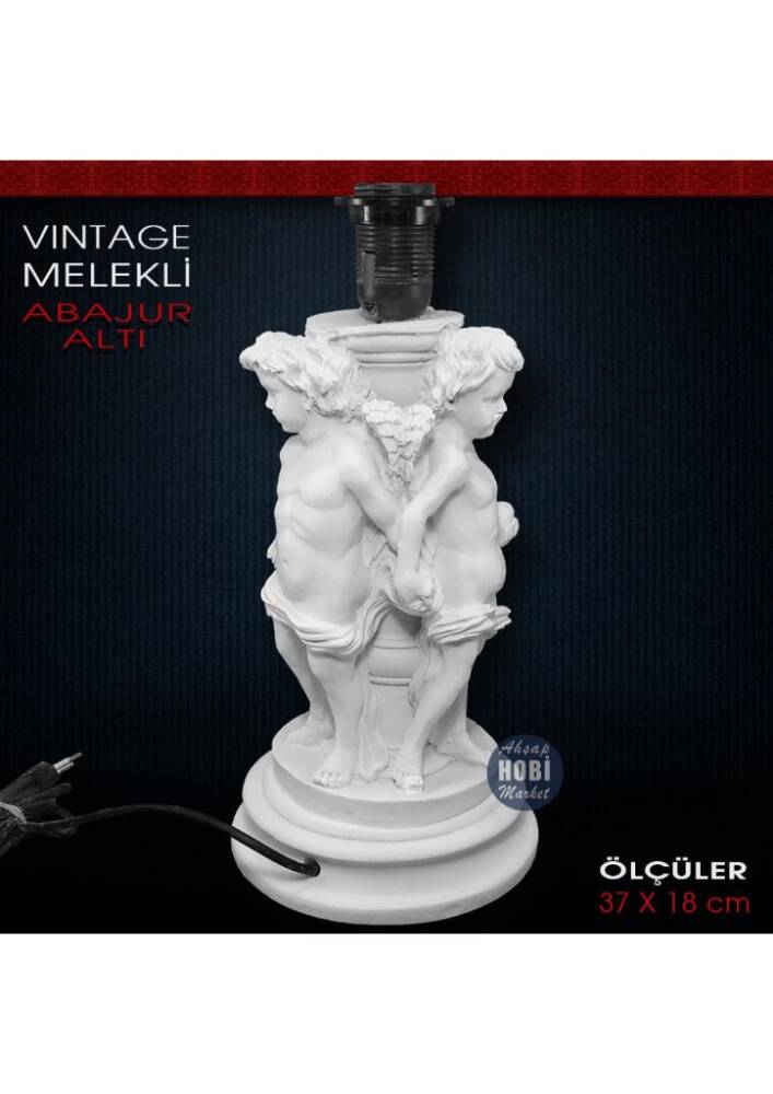 Vintage Melekli Abajur Altı (37x18 cm) Ham Polyester