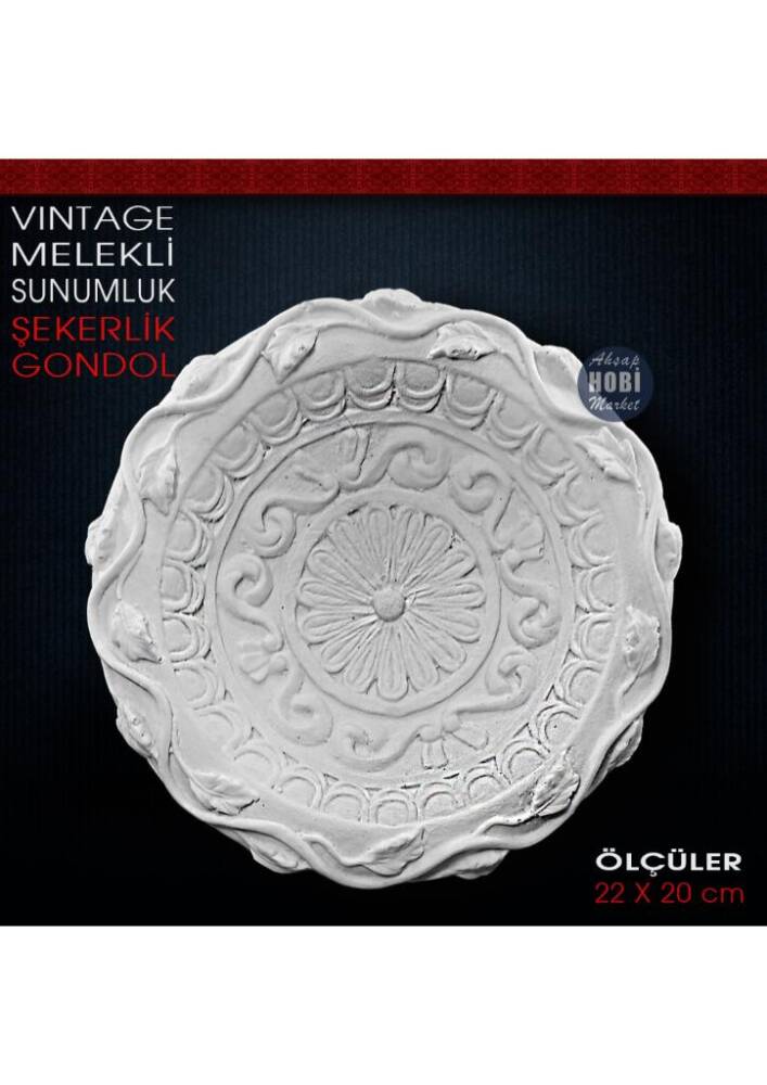 Vintage Melekli Sunumluk Gondol Şekerlik (22x20 cm) Ham Polyester