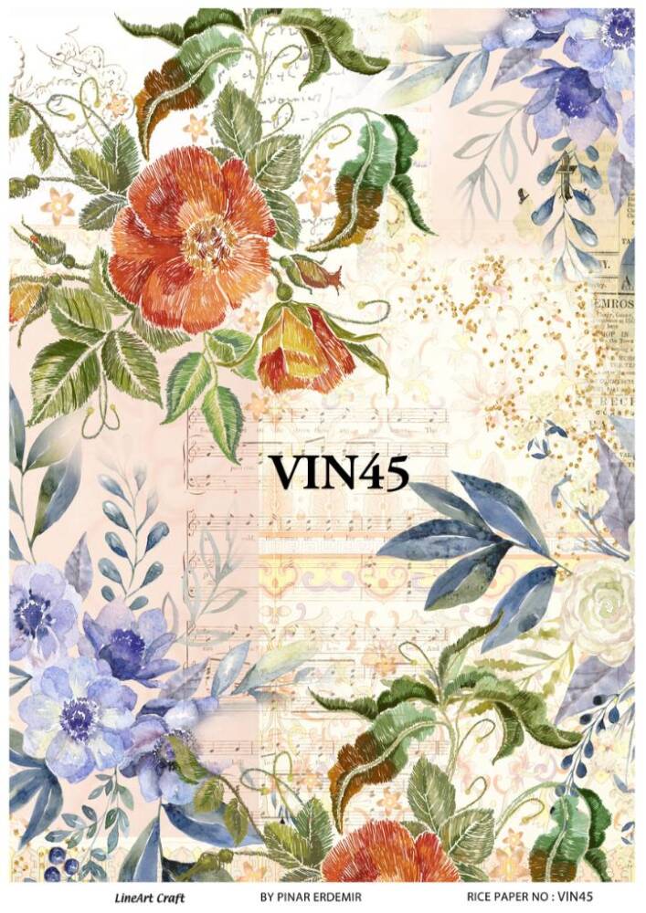 Vintage Nota ve Çiçek Desenli Pirinç Dekopaj Model : VIN45