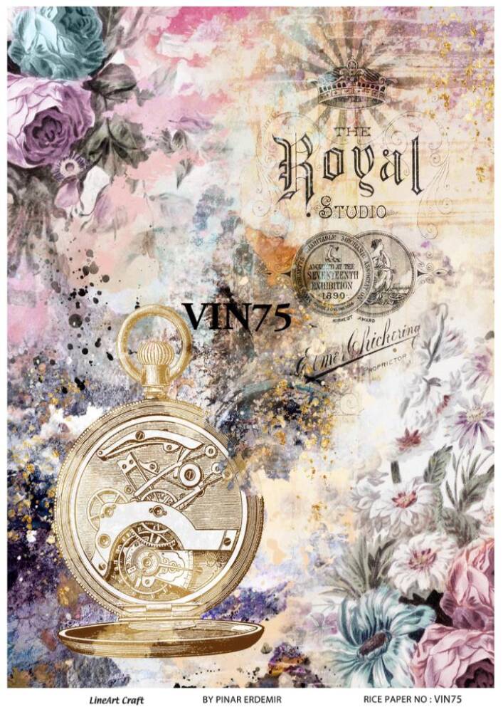 Vintage Saat ve Çiçek Desenli Pirinç Dekopaj Model : VIN75