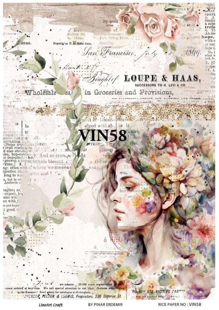 Vintage Yazı Çiçek ve Kadın Desenli Pirinç Dekopaj Model : VIN58