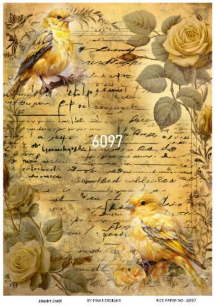 Vintage Yazı Kuş ve Çiçek Desenli Pirinç Dekopaj Model : 6097