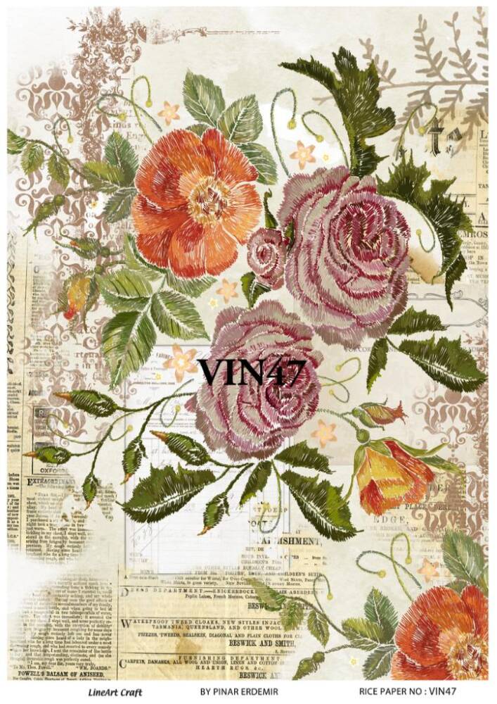 Vintage Yazı ve Çiçek Desenli Pirinç Dekopaj Model : VIN47