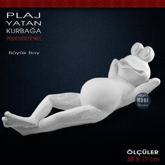 Yatan Güneşlenen Kurbağa Heykeli (38x17 cm) Ham Polyester