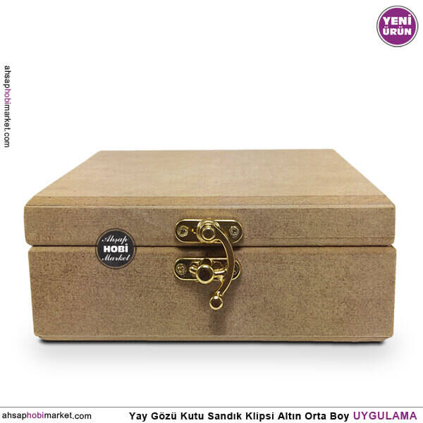 Gelince Haber VerOrta Boy Yay Gözü Kutu ve Sandık Klipsi, her türlü düz kutu, tavla kutusu, küçük sandık, okey kutusu, dekoratif ahşap boyama kutusu, tesbih kutusu gibi objelerde kullanabileceğiniz, vidalayarak kullanılabilen, uygulandığı objeye görkemli bir hava katarken, kutu kapağının da açılmasını engelleyen, altın rengi görünüm verilmiş bir metal aksesuardır.