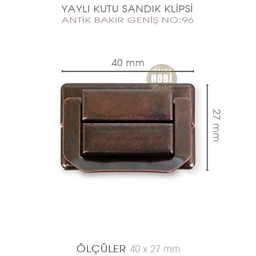 Gelince Haber VerYaylı Geniş Kutu ve Sandık Klipsi, her türlü düz kutu, tavla kutusu, sandık, okey kutusu, dekoratif ahşap boyama kutusu, tesbih kutusu gibi objelerde kullanabileceğiniz, vidalayarak kullanılabilen, eski bavul kilitlerine benzeyen vintage temalı, uygulandığı objeye görkemli bir hava katarken, kutu kapağının da açılmasını engelleyen, oksit bakır rengi eskitilmiş bir metal klips aksesuardır.