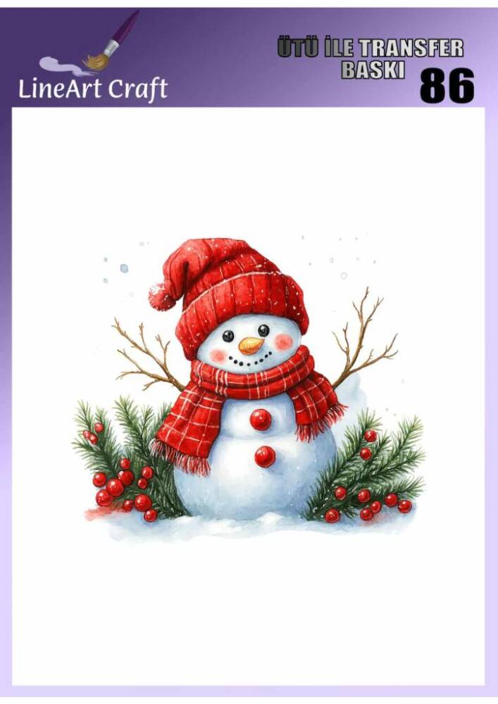 Yılbaşı Kardan Adam Desenli Kumaş Transfer Kağıdı LNT-K086 (20x20 cm)