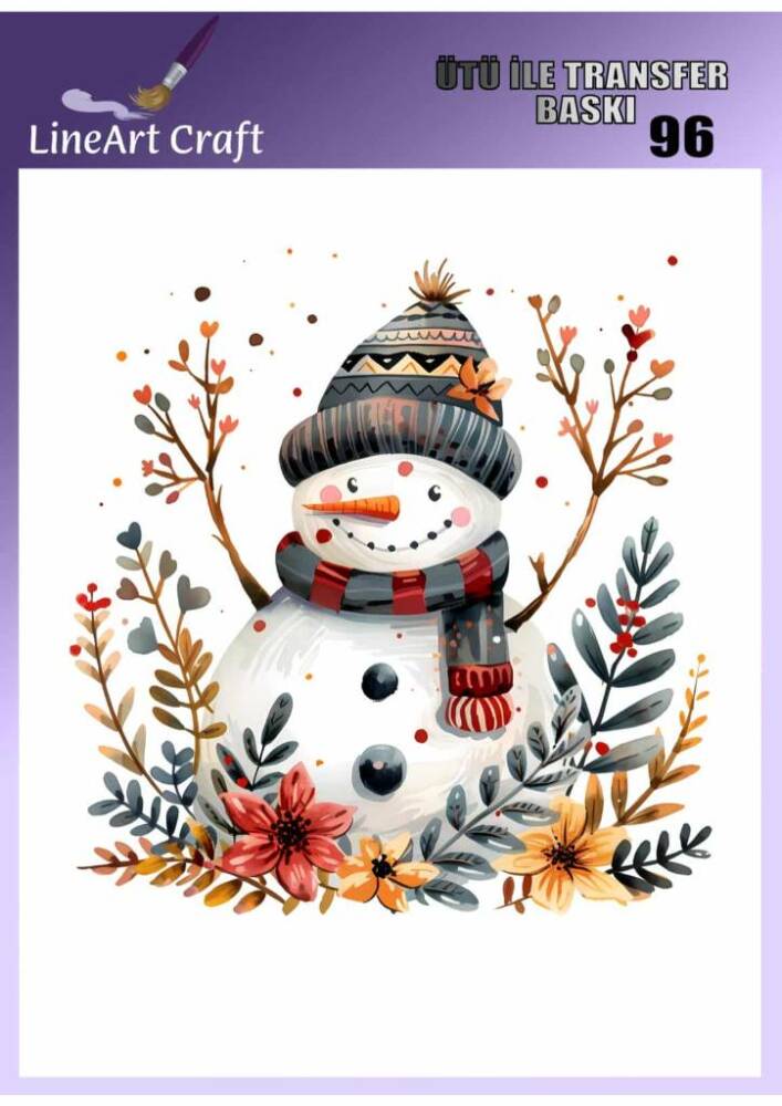 Yılbaşı Kardan Adam Desenli Kumaş Transfer Kağıdı LNT-K096 (20x20 cm)
