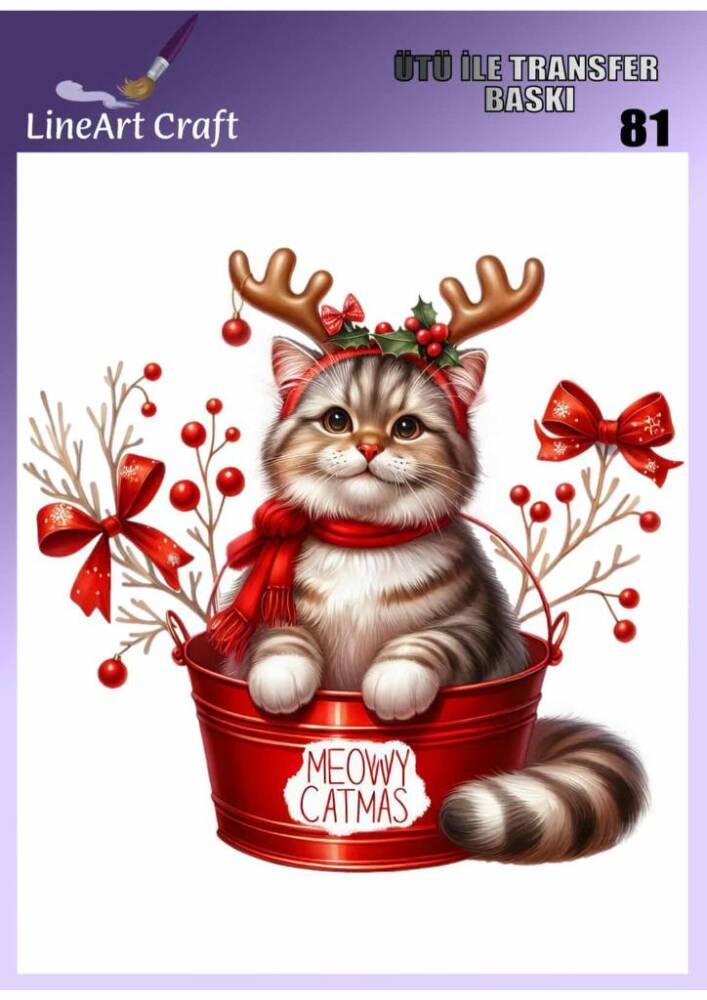 Yılbaşı ve Kedi Desenli Kumaş Transfer Kağıdı LNT-K081 (20x20 cm)