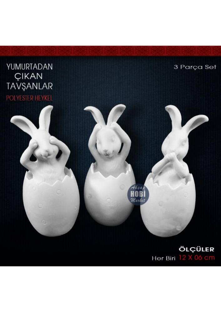 Yumurtadan Çıkan Tavşanlar Biblo Seti (3 Parça)
