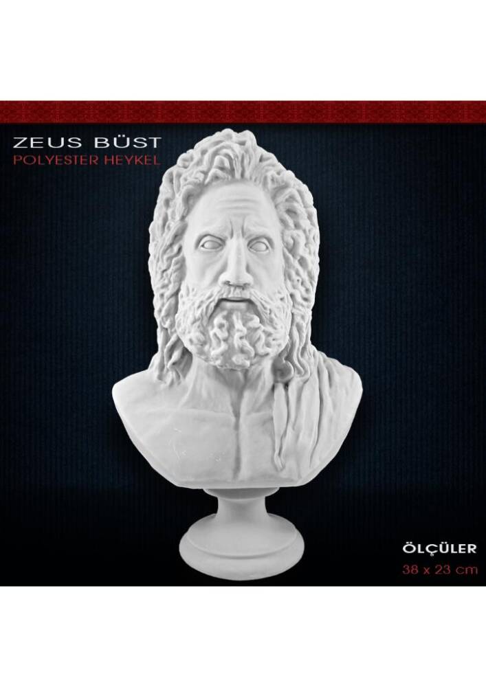 Zeus Büst Heykeli (38x23cm) Ham Polyester