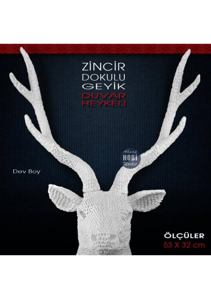 Zincir Dokulu Geyik Duvar Heykeli Dev Boy (53x32 cm) Ham Polyester